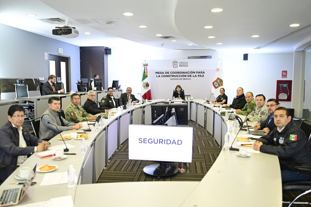 En la Mesa de Coordinación para la Construcción de la Paz participan Horacio Duarte Olivares, Secretario General de Gobierno; Andrés Andrade Téllez, Secretario de Seguridad estatal; y José Luis Cervantes Martínez, Fiscal General de Justicia del Estado de México.
