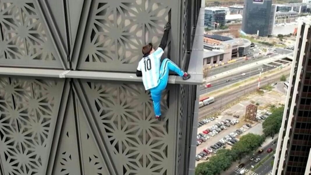 El escalador polaco Marcin Banot fue arrestado tras escalar sin arnés 25 pisos de un edificio en Buenos Aires, vistiendo la camiseta número 10 de la selección argentina. Las imágenes de Banot trepando el edificio Globant en Puerto Madero se viralizaron rápidamente.