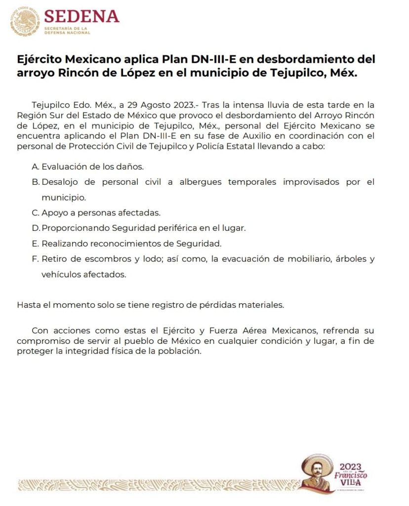 En respuesta al desastre, elementos de la Guardia Nacional y de la Secretaría de la Defensa Nacional (Sedena) se desplegaron en la zona para realizar tareas de limpieza y remoción de escombros. Estos equipos están trabajando para despejar lodo y tierra acumulada, minimizando riesgos adicionales para los residentes.