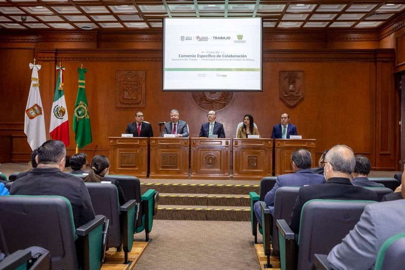 Con el objetivo de brindar mayores oportunidades laborales y de profesionalización a la comunidad universitaria y al servicio público en la entidad, la Universidad Autónoma del Estado de México (UAEMéx) y la Secretaría del Trabajo mexiquense firmaron un convenio específico de colaboración.