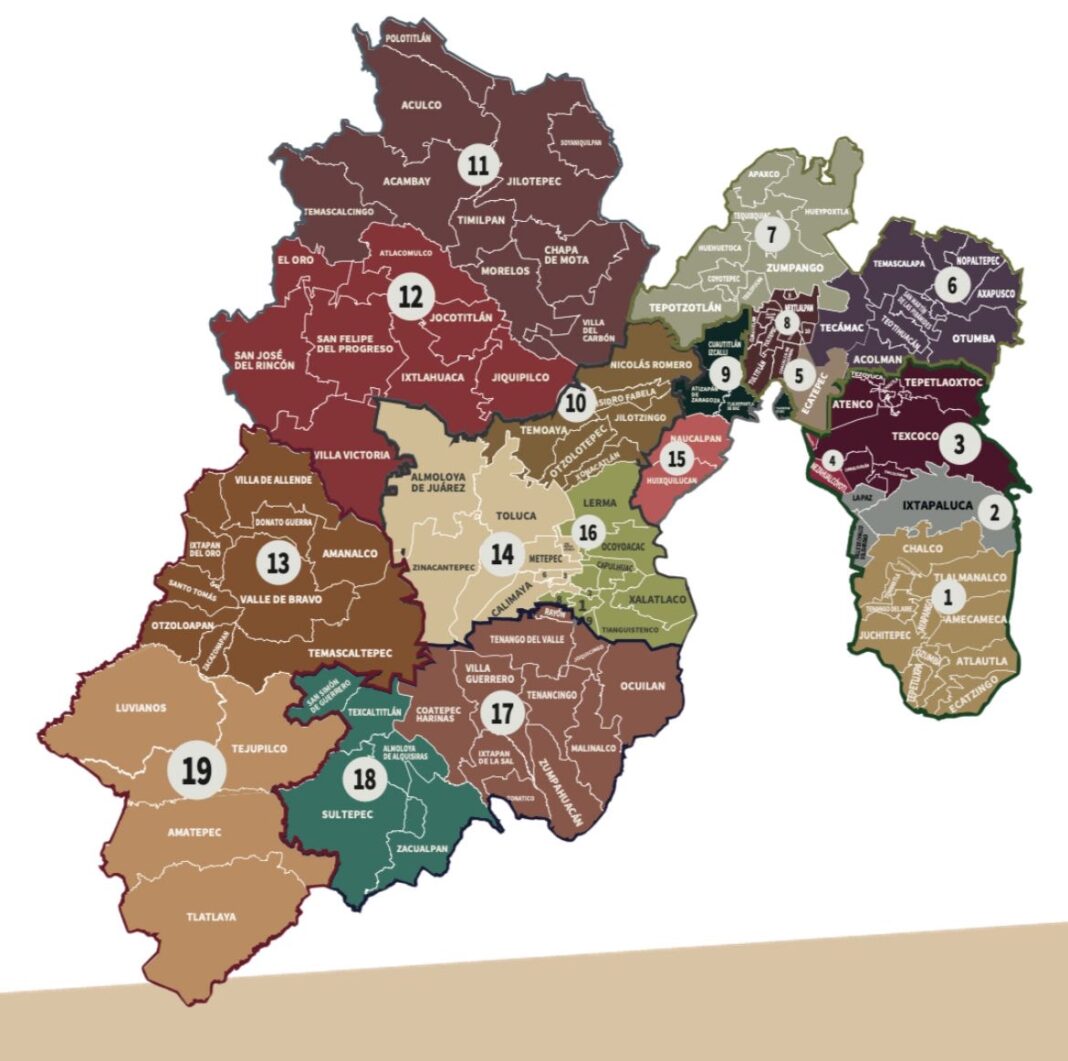 – Zona 5 Valle de Toluca: compuesta por 3 regiones.