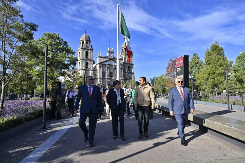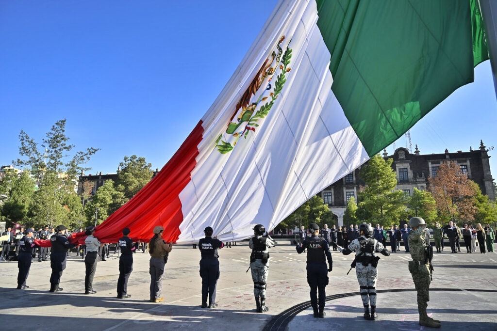En uno de los actos oficiales más emblemáticos para los mexiquenses, la Maestra Delfina Gómez Álvarez, Gobernadora del Estado de México, encabezó la mañana de este lunes, el primero del mes de agosto, la ceremonia oficial que puso en todo lo alto del corazón de la capital mexiquense el lábaro patrio de la monumental asta bandera localizada en la Plaza de los Mártires de Toluca.