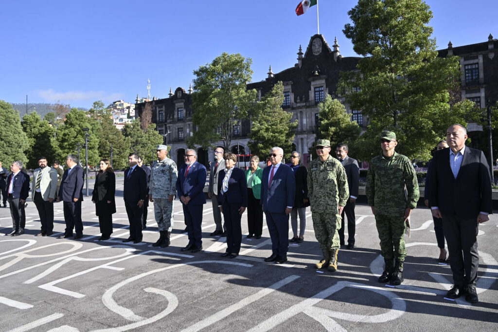 En esta ceremonia cívica, la Gobernadora del Estado de México estuvo acompañada de integrantes de la Mesa de Coordinación para la Construcción de la Paz y del Gabinete estatal, con quienes posteriormente llevó a cabo trabajos de avance y consolidación de estrategia.