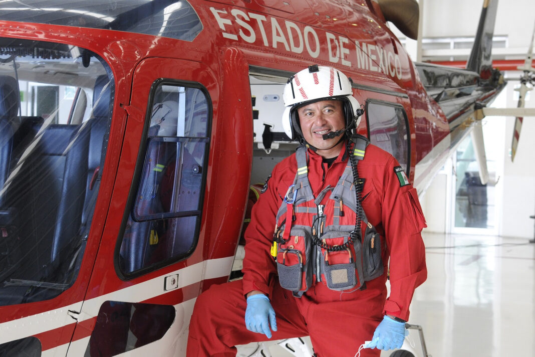 Ángel Zúñiga Hernández, paramédico con tres décadas de experiencia, es un miembro veterano de la Unidad de Rescate Aéreo “Relámpagos” del Gobierno del Estado de México. Desde su ingreso en 1994, cuando tenía solo 19 años, ha sido testigo y partícipe de innumerables rescates, convirtiéndose en un pilar de esta agrupación. Durante estos años, “Relámpagos” ha evolucionado, transformándose de una unidad enfocada en patrullajes aéreos y vigilancia, a una dedicada principalmente al rescate y apoyo humanitario.