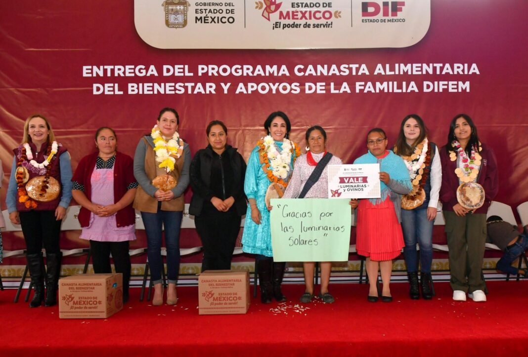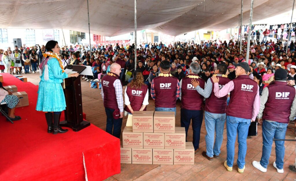 La Gobernadora del Estado de México, Delfina Gómez Álvarez, encabezó la entrega de más de 350 mil apoyos del Programa Canasta Alimentaria del Bienestar en la zona norte de la entidad. Esta iniciativa, impulsada por el Sistema para el Desarrollo Integral de la Familia del Estado de México (DIFEM), busca mejorar la calidad de vida de 80 mil familias en los 125 municipios mexiquenses. En esta ocasión, además de las canastas alimentarias, se distribuyeron luminarias solares y ovinos como parte del Programa de Bienestar y Desarrollo Comunitario.