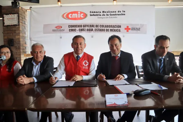 La Cámara Mexicana de la Industria de la Construcción (CMIC), Delegación Estado de México, y la Cruz Roja Mexicana, Delegación Toluca y Metepec, firmaron un convenio de colaboración para fortalecer alianzas estratégicas que beneficien a las comunidades mexiquenses. Arnulfo Martínez Sánchez, presidente de la CMIC Edomex, destacó la responsabilidad social de la Cámara y el compromiso con las comunidades vulnerables, subrayando que el acuerdo otorgará beneficios tangibles, como cuotas preferentes para afiliados del sector constructor.