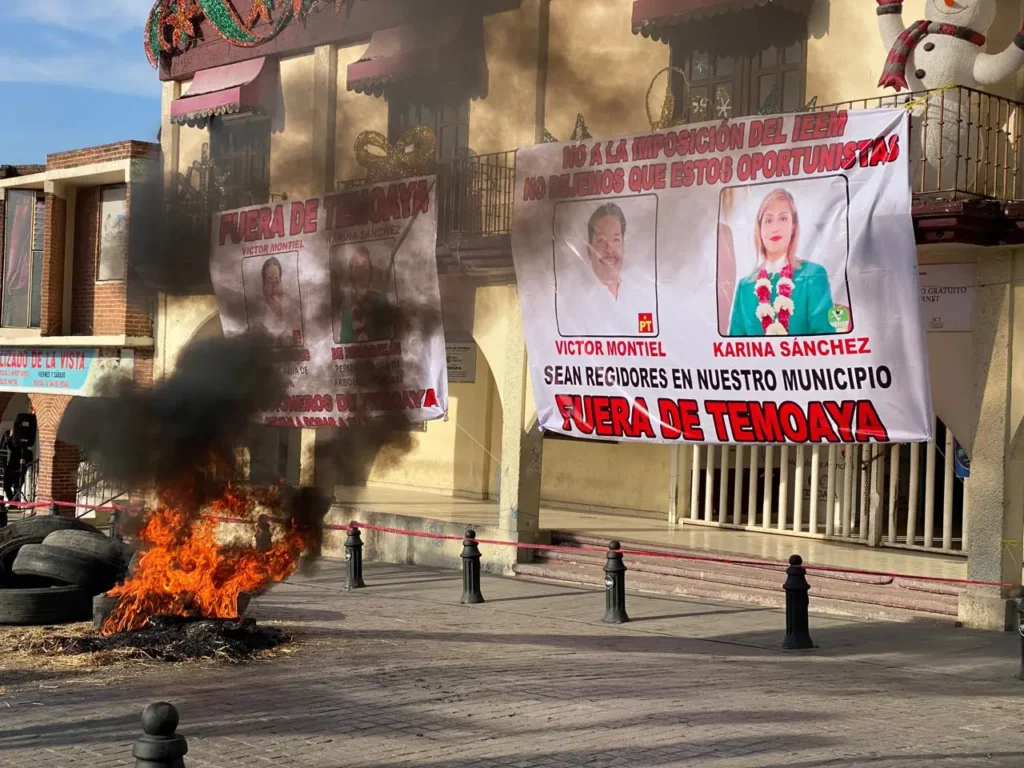 Víctor Montiel Reyes, Segundo Regidor Propietario del Ayuntamiento de Temoaya, Estado de México, fue obligado a renunciar a su cargo tras ser amarrado a un poste por un grupo de alrededor de 100 pobladores inconformes. Los manifestantes, que también exigieron la destitución de Karina Sánchez, regidora del PVEM, argumentaron que ambos funcionarios no eran originarios del municipio y que sus nombramientos respondían a imposiciones políticas.