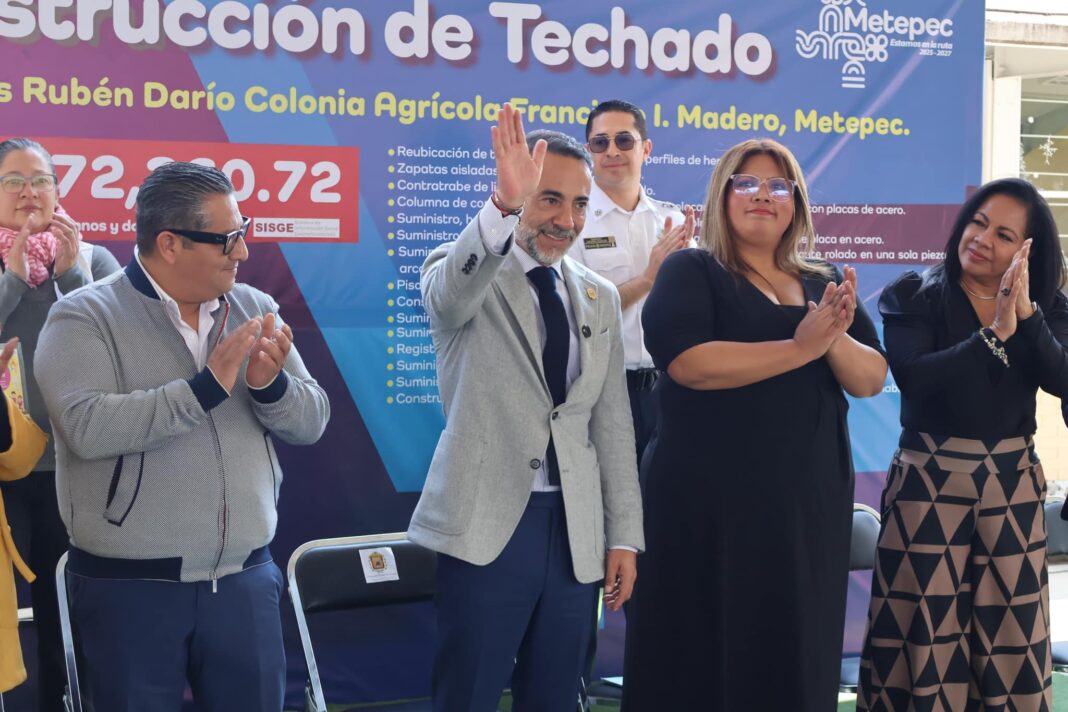 Ahora, como parte de su visión de mejorar las condiciones de vida en Metepec, el alcalde entregó la nueva techumbre del Jardín de Niños Rubén Darío, ubicado en la colonia Francisco I. Madero. Esta obra, que beneficia a cientos de pequeños del municipio, permite a los niños disfrutar de sus actividades recreativas sin la preocupación de los cambios climáticos. Una medida que refleja la prioridad que el gobierno local ha dado a la infraestructura educativa y al bienestar de los más jóvenes.