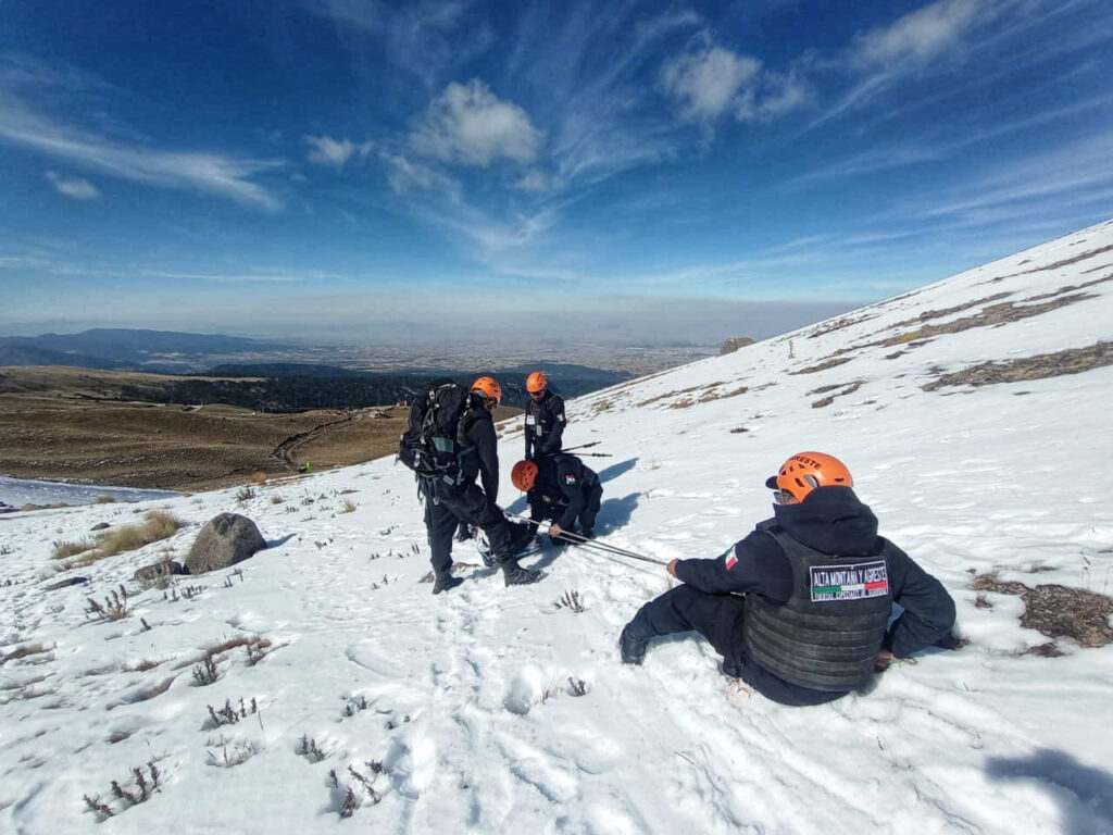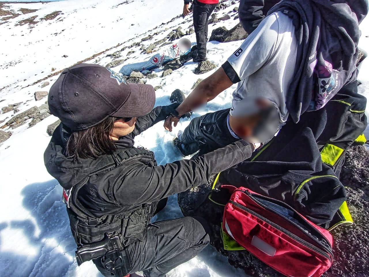 En atención a una llamada de auxilio, Policía de Alta Montaña y Agreste de la Secretaría de Seguridad del Estado de México (SSEM), auxilió en el Nevado de Toluca, a cuatro personas que sufrieron lesiones por golpes con piedras y fricción con la nieve, tras resbalar en su descenso de la Cresta del Pico de Humboldt.