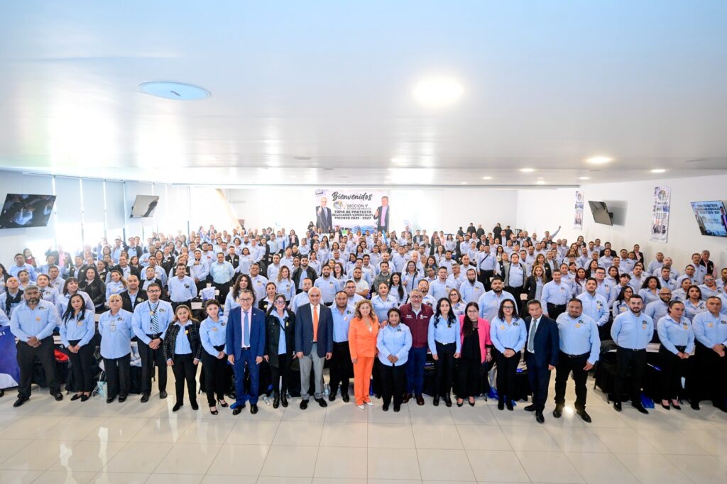 Durante la toma de protesta de los nuevos integrantes de los Comités Ejecutivos Delegacionales de la Sección V estatal del Sindicato Nacional de Trabajadores del Seguro Social (SNTSS), Duarte Olivares reiteró el apoyo del gobierno estatal a las iniciativas de los trabajadores, cuyo esfuerzo busca ampliar los servicios y los beneficios del IMSS.