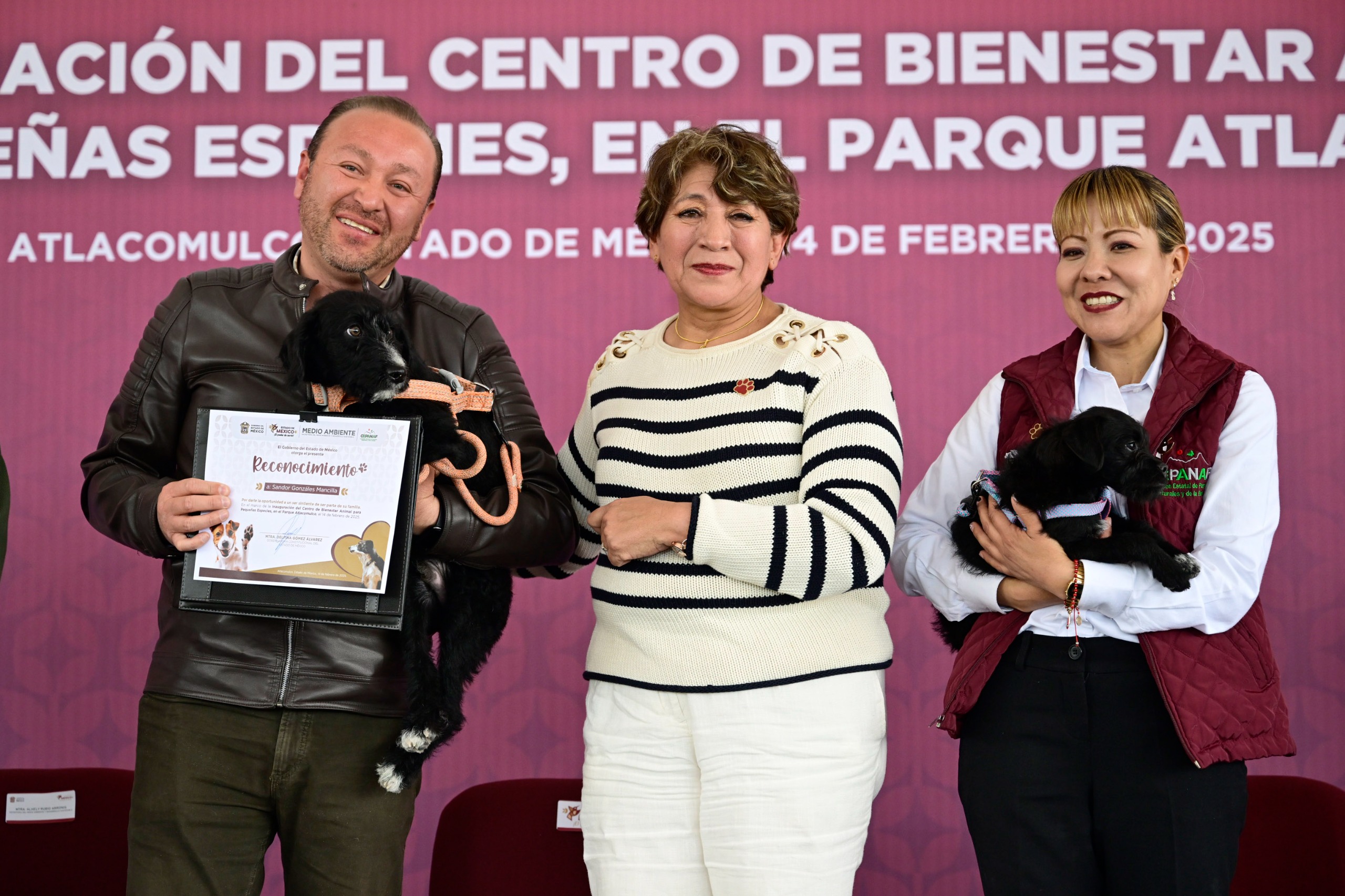 En este evento la Mandataria estatal hizo entrega de reconocimientos a donantes de alimento para seres sintientes y a personas adoptantes, entre ellos, Ruth Mejía, Gerente Nestlé Purina; Roberto Salgado Mercado, representante del Club Deportivo Toluca; Itzel Valeria Vázquez Carrasco; Sandor González Mancilla, Reina Patricia García Correa, David Alvarado Lara, Sonja Scherber, el diputado local Francisco Vázquez Rodríguez, y Carlos Barrera Díaz, Rector de la UAEMéx.