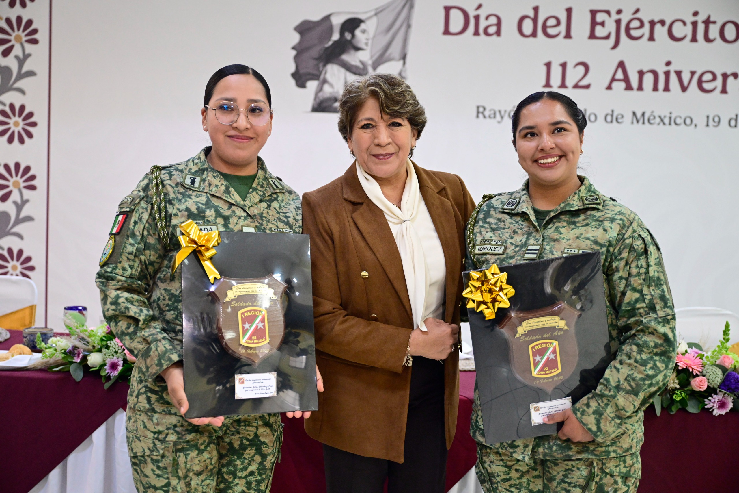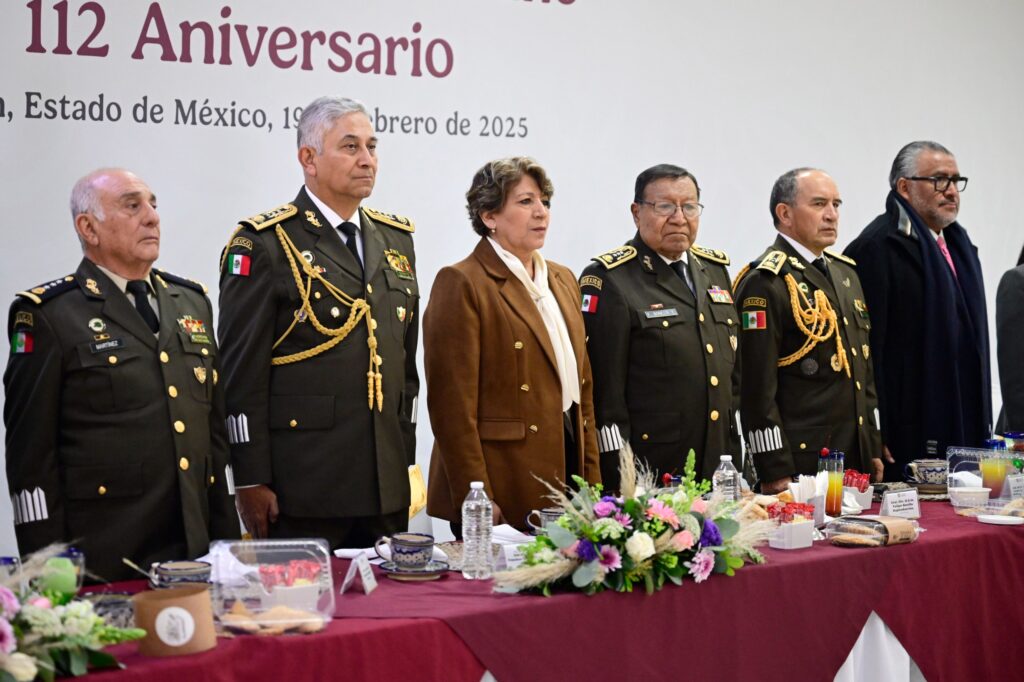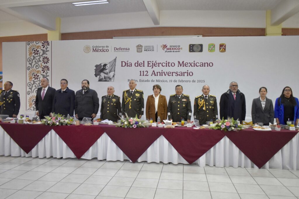 En conmemoración del 112° Aniversario del Día del Ejército Mexicano, la Gobernadora del Estado de México, Delfina Gómez Álvarez, presidió la ceremonia, en la que otorgó distinciones a miembros destacados de las Fuerzas Armadas. Antes de este evento, la Mandataria estatal llevó a cabo la sesión número 354 de la Mesa de Coordinación para la Construcción de la Paz.