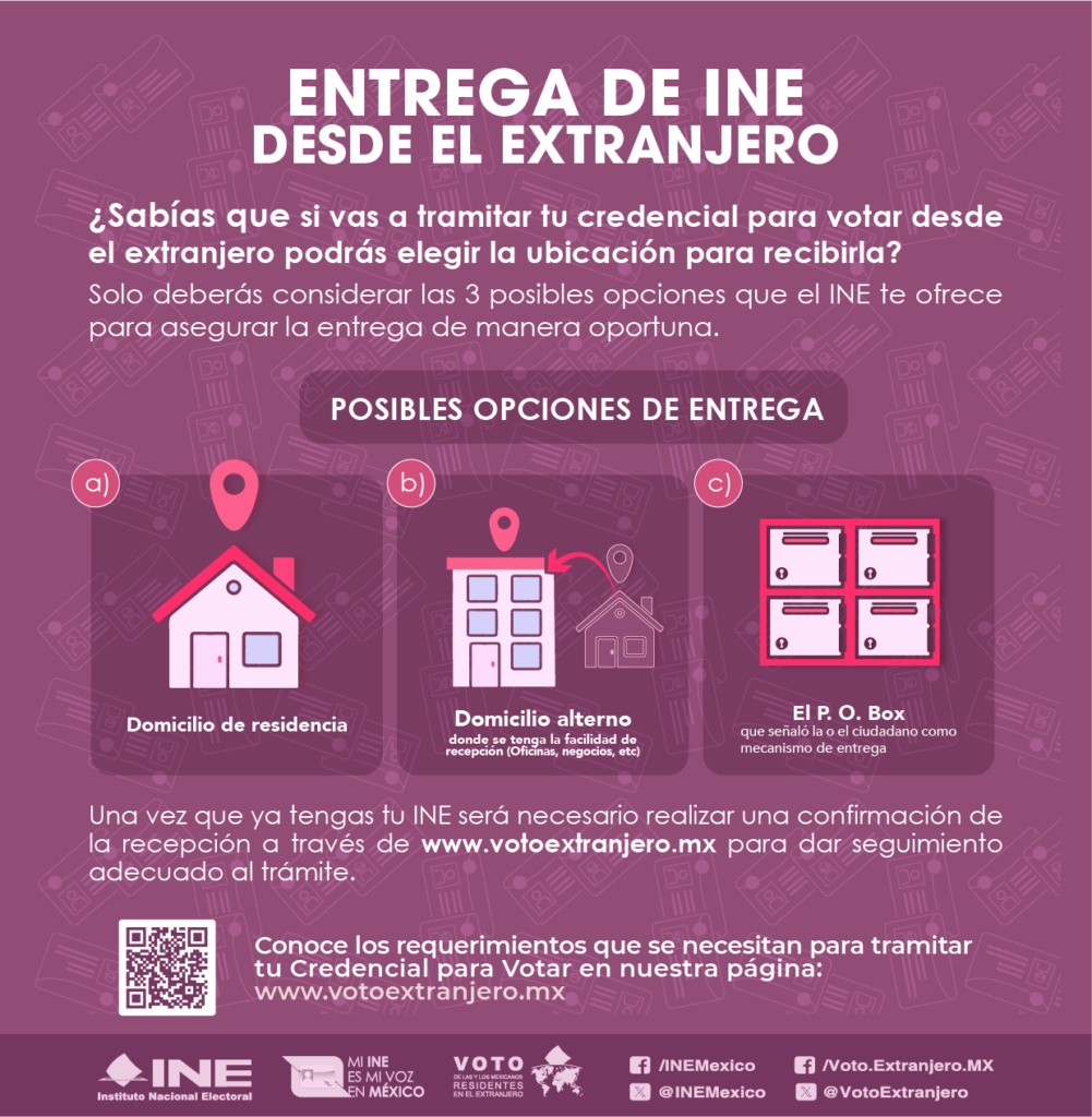 Si tienes dudas o contratiempos con la entrega de tu Credencial para Votar desde el extranjero, contáctanos, a través de INETEL, llamando al 1 (866) 986 8306, desde Estados Unidos, o al +52 (55) 5481 9897 desde otros países; o bien, escríbenos a inetelmx@ine.mx.