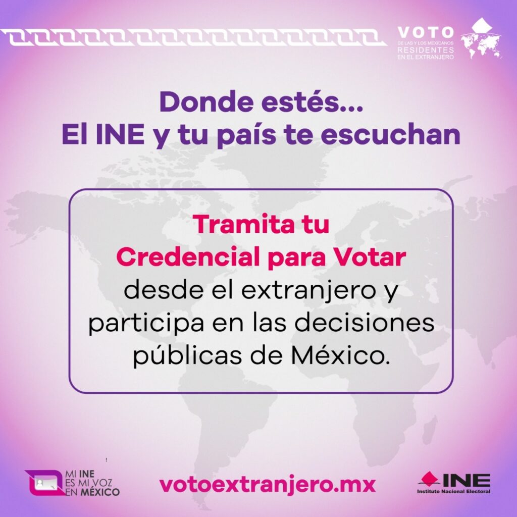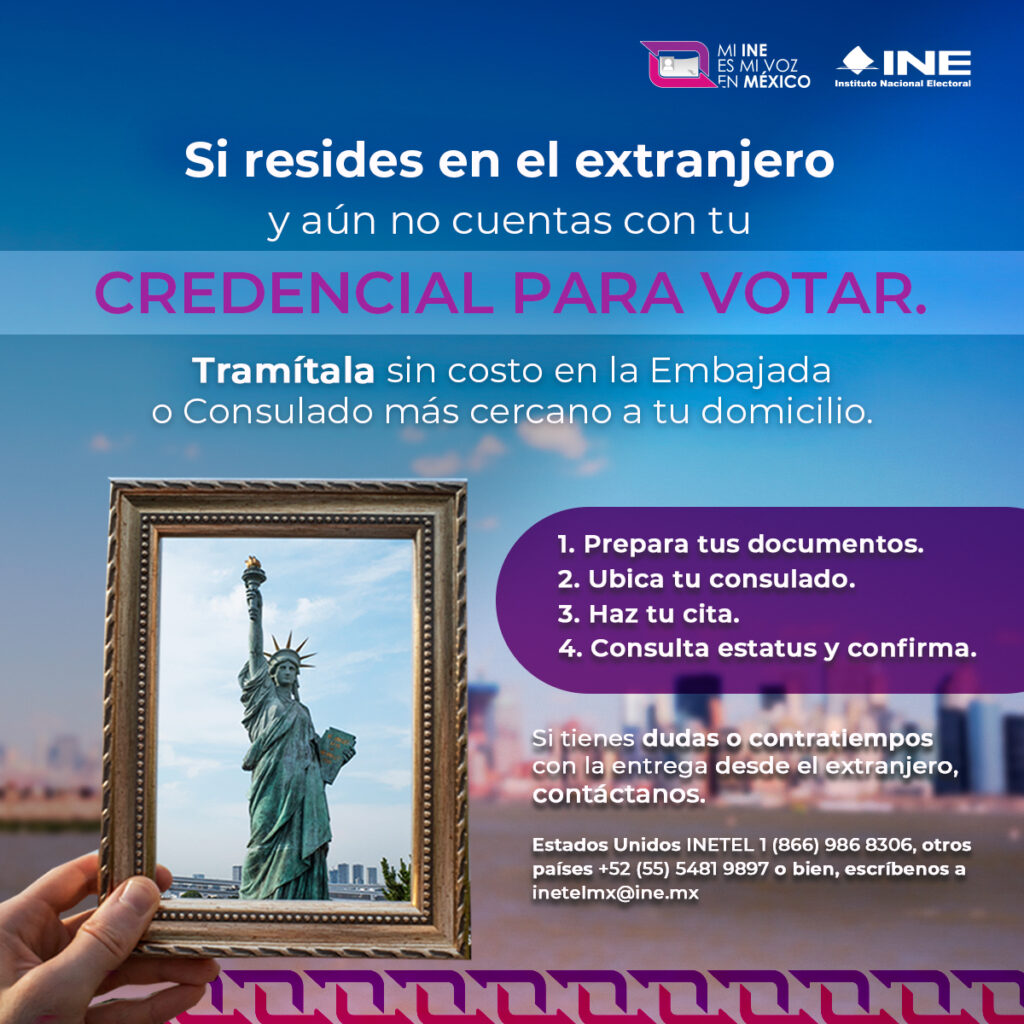 Con el objetivo de facilitar la credencialización y el ejercicio de los derechos político-electorales fuera de territorio nacional, la Junta Local Ejecutiva del Instituto Nacional Electoral (INE) en el Estado de México hace una atenta invitación a las y los mexiquenses residentes en el extranjero, que tramiten de manera gratuita su Credencial para Votar en el consulado más cercano a su domicilio.