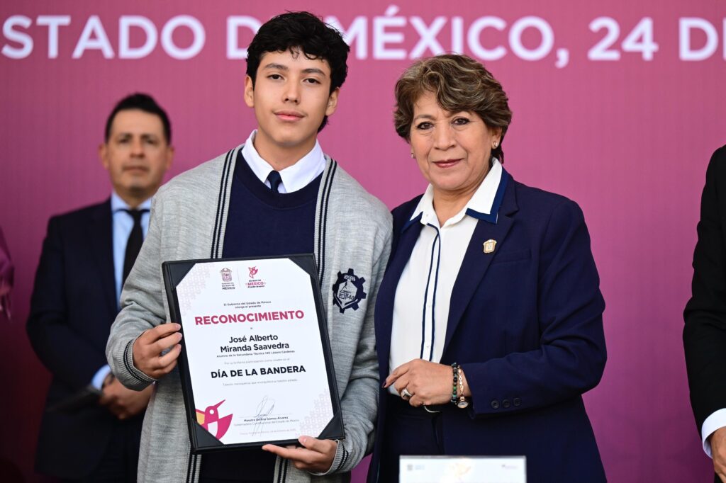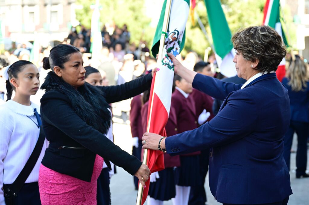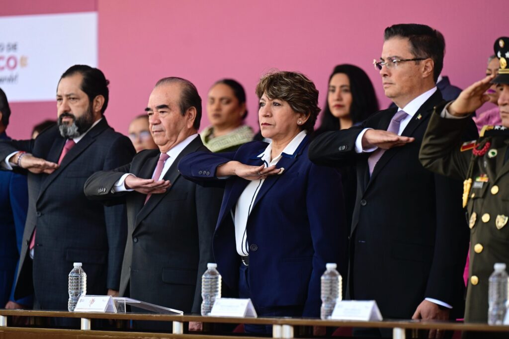 La Gobernadora Delfina Gómez Álvarez presidió la Ceremonia del Día de la Bandera y la Toma de Protesta de Bandera a 25 escoltas en la Plaza de los Mártires, en la capital mexiquense. Desde este lugar, se enlazó con el acto cívico liderado por la Presidenta Claudia Sheinbaum Pardo, quien tomó protesta de bandera a 920 escoltas de primarias y secundarias de distintas entidades y a 56 representaciones de las fuerzas armadas.