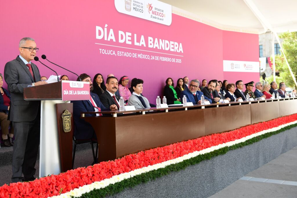 Afirmó que este día no solo representa un tributo a la Bandera como símbolo patrio, sino también un recordatorio de la lucha constante que se respalda con acciones. En este contexto, reconoció a la Presidenta Claudia Sheinbaum Pardo por su firmeza en la defensa de la soberanía nacional y reafirmó el respaldo del Gobierno del Estado de México.
