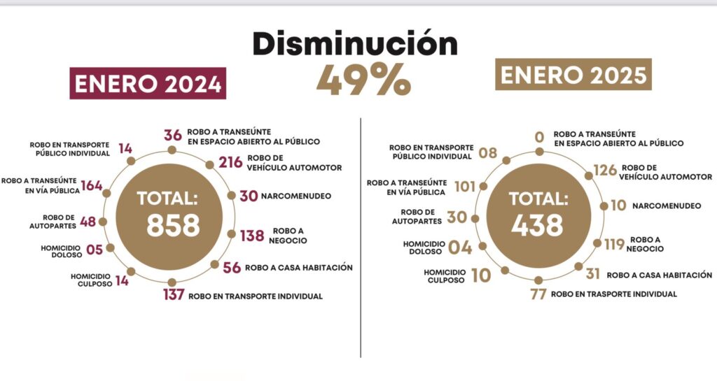 Estos resultados se atribuyen a la coordinación operativa entre los tres órdenes de gobierno y la colaboración de la ciudadanía. Pese a los avances, las autoridades continúan reforzando estrategias para garantizar mayor seguridad en la zona. Durante la Mesa de Coordinación para la Construcción de la Paz, la Fiscalía Especializada en Investigación del Delito de Robo de Vehículo informó que en febrero se redujo un 45.4% el inicio de carpetas de investigación por este delito, consolidando una tendencia a la baja en la incidencia delictiva.