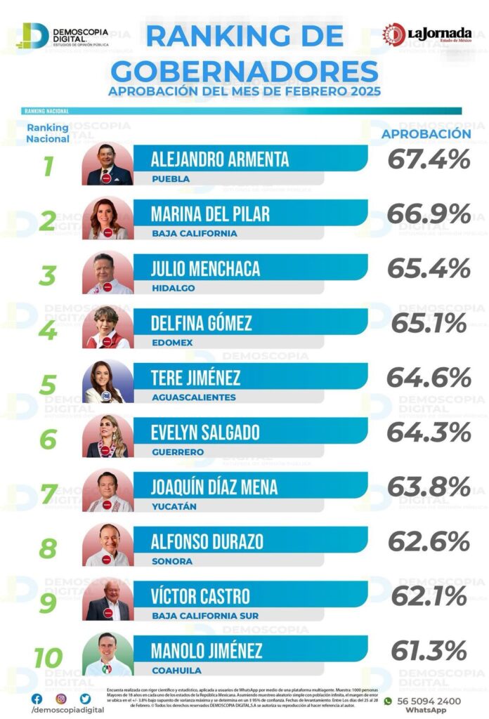 Con estos resultados, Gómez cerró el primer bimestre del año con un liderazgo sólido. La continuidad de sus políticas ha generado confianza en la población, consolidando su posición como una de las gobernadoras mejor evaluadas.