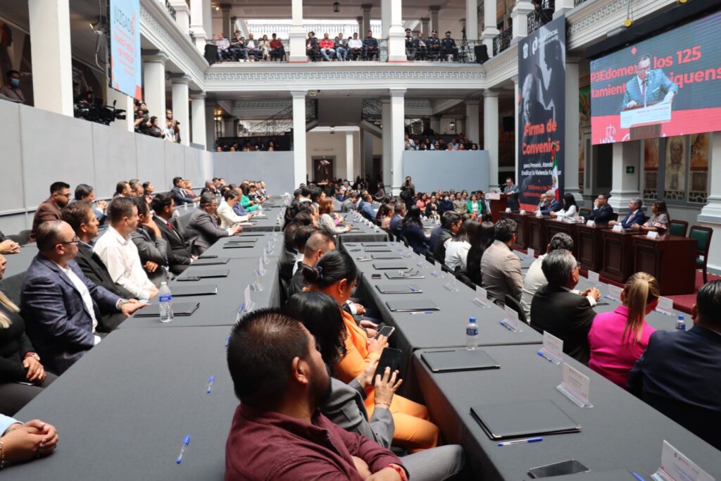 El Poder Judicial del Estado de México y los 114 ayuntamientos de la entidad firmaron el Convenio de Colaboración para Prevenir, Atender y Erradicar la Violencia Familiar.