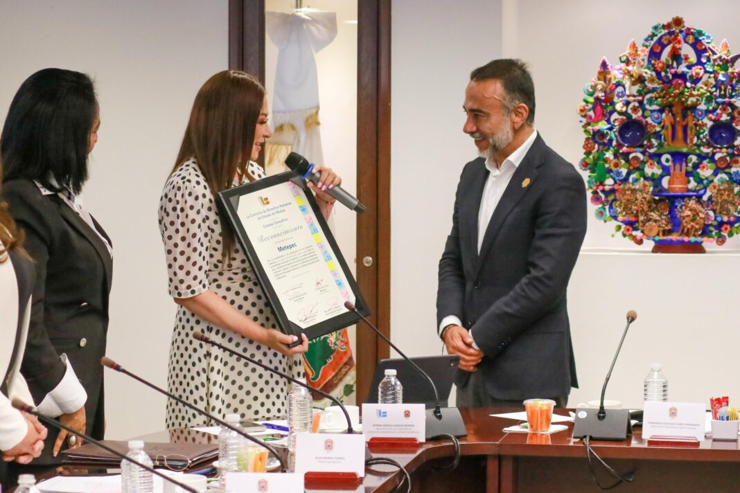 El municipio de Metepec fue reconocido por su trabajo destacado en la implementación de políticas públicas centradas en los derechos humanos. La entrega del galardón tuvo lugar el 10 de abril de 2025 y fue encabezada por Myrna A. García Morón, quien resaltó la labor del alcalde Fernando Flores y su equipo por promover acciones que respetan y garantizan los derechos fundamentales.