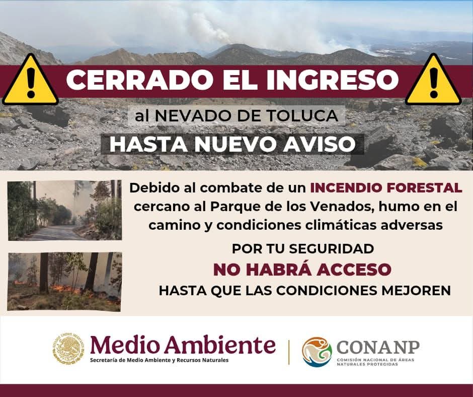 El acceso al Nevado de Toluca fue cerrado debido a un incendio forestal registrado en el paraje conocido como El Calvarito, ubicado en los ejidos de San Juan de las Huertas. En respuesta, elementos de Protección Civil y Bomberos del Ayuntamiento de Toluca se sumaron a las labores para sofocar el siniestro, en coordinación con instancias federales y estatales.