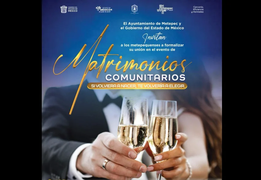 El próximo sábado 26 de abril a las 12:00 horas, el municipio de Metepec será sede de una ceremonia colectiva de matrimonios civiles, organizada por el gobierno local en coordinación con el Gobierno del Estado de México. El evento se llevará a cabo en la Plaza Juárez, en el corazón del municipio.