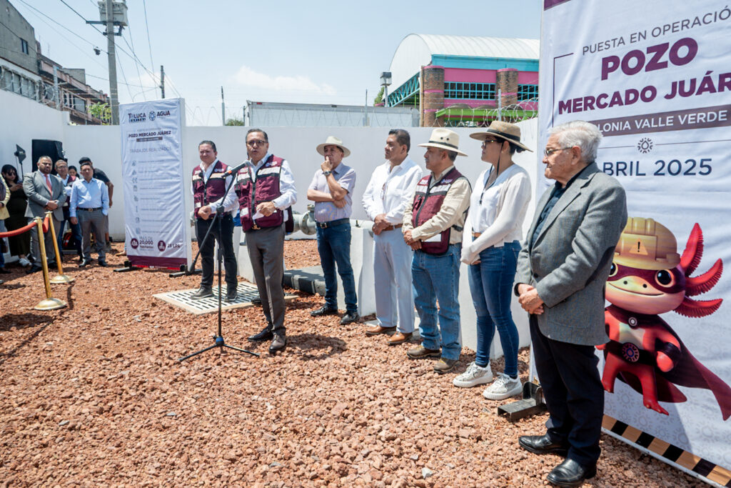 Con el objetivo de reforzar el abastecimiento de agua potable en la capital mexiquense, autoridades municipales pusieron en operación el pozo Mercado Juárez, infraestructura que beneficiará a más de 20 mil habitantes de las colonias Valle Verde, Terminal y zonas cercanas.