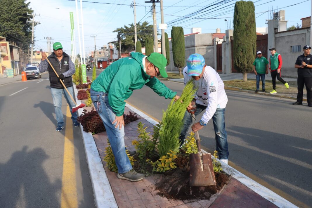 También se realizaron labores de jardinería en espacios públicos: se podaron árboles, se trasplantaron plantas y se removió tierra en los camellones que embellecen la vialidad, los cuales albergan diversas especies florales y arbóreas. Con estas acciones, se busca mejorar la imagen urbana y fomentar una cultura ambiental sostenible entre la población.