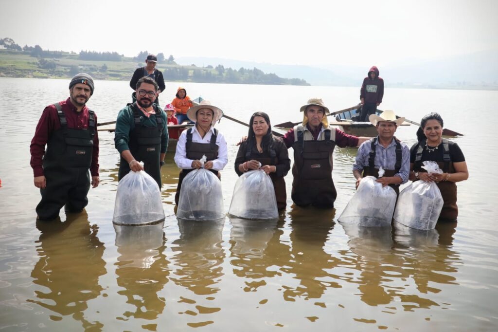 Como parte de estas acciones, la Secretaria del Campo, María Eugenia Rojano Valdés, encabezó la entrega y siembra de más de 200 mil crías de carpa a cooperativistas de la presa Tepetitlán, en San Felipe del Progreso. La siembra proyecta generar hasta 33 toneladas de carne al alcanzar el tamaño ideal, beneficiando directamente a las comunidades locales y diversificando sus actividades productivas.