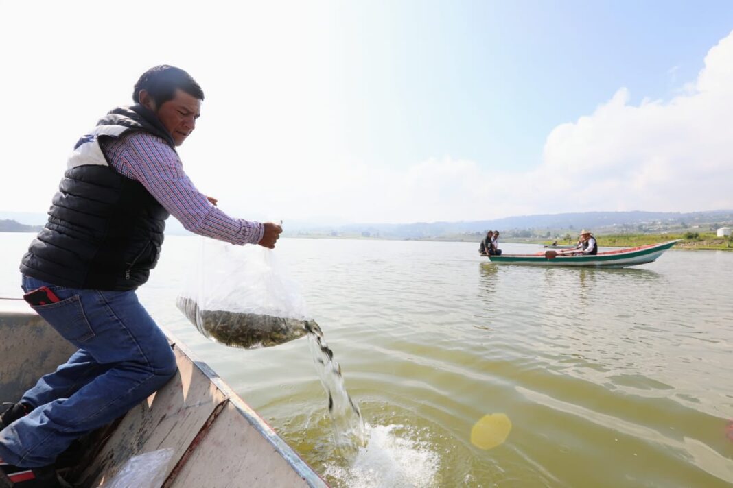 Como parte de estas acciones, la Secretaria del Campo, María Eugenia Rojano Valdés, encabezó la entrega y siembra de más de 200 mil crías de carpa a cooperativistas de la presa Tepetitlán, en San Felipe del Progreso. La siembra proyecta generar hasta 33 toneladas de carne al alcanzar el tamaño ideal, beneficiando directamente a las comunidades locales y diversificando sus actividades productivas.