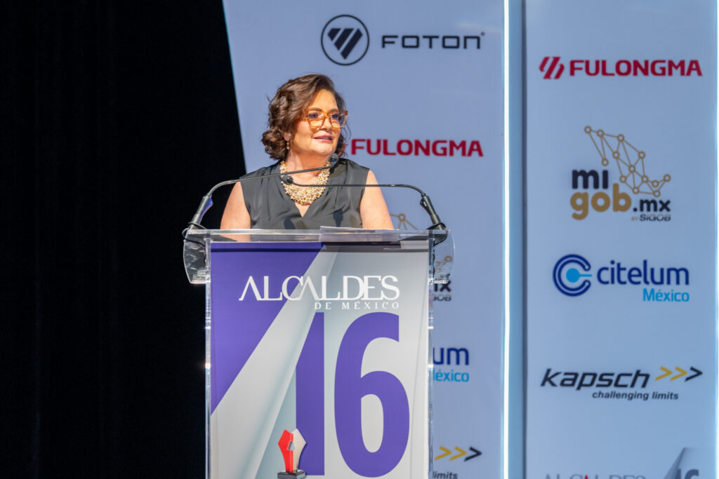 Evento en la Ciudad de México por Gladis López Blanco, presidenta de la publicación Alcaldes de México, al presidente municipal Ricardo Moreno. Esta evalúa el desempeño de los 2 mil 478 municipios y alcaldías del país.