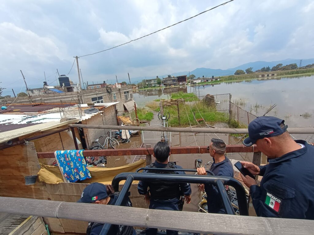 La Comisión del Agua del Estado de México (CAEM) se sumó a los esfuerzos con la operación de cuatro bombas para disminuir el nivel del canal, mientras que el cárcamo Totoltepec se encuentra activo para apoyar en el desalojo del agua acumulada.