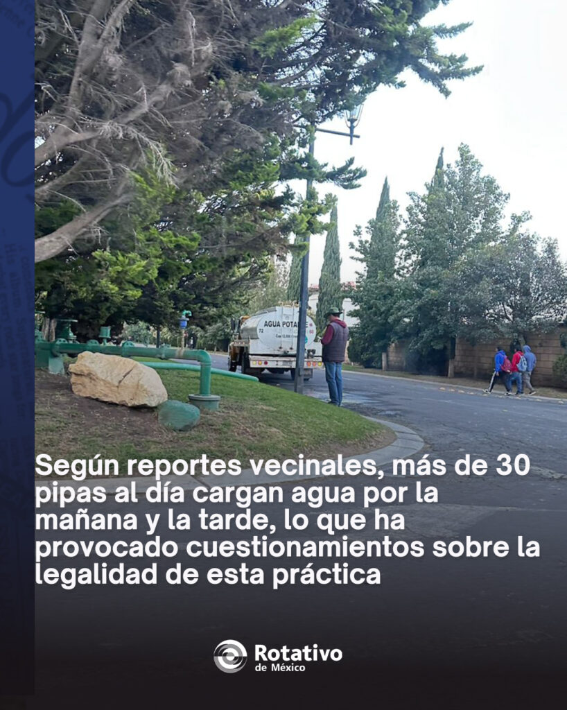 La situación ha generado alarma entre los vecinos, quienes temen quedarse sin agua potable, ya que el suministro es un servicio que pagan directamente al municipio. Según reportes vecinales, más de 30 pipas al día cargan agua por la mañana y la tarde, lo que ha provocado cuestionamientos sobre la legalidad de esta práctica y el destino de los recursos obtenidos por la aparente venta del líquido.