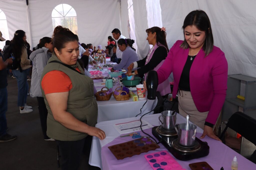 Durante la jornada estuvieron presentes el presidente municipal Manuel Vilchis Viveros y la presidenta del DIF municipal Jessica Ríos Lara. Ambos recorrieron los espacios instalados y convivieron con participantes y emprendedoras.