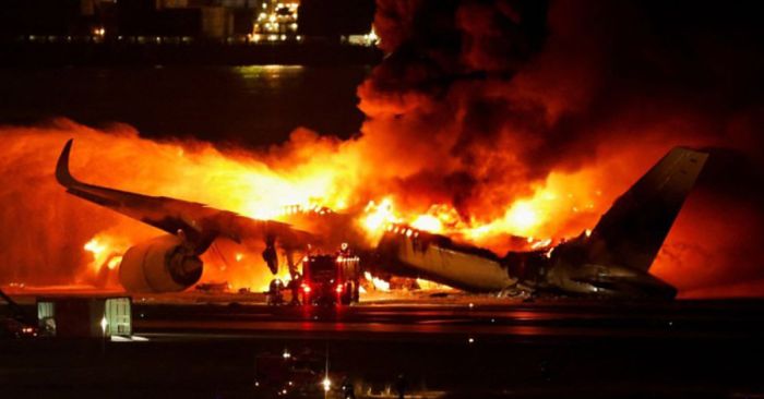 A través de videos en redes sociales y comunicados se dio a conocer que un avión de pasajeros chocó con un avión de la guardia costera japonesa y estalló en llamas en la pista del aeropuerto Hanneda de Tokio, de acuerdo con informes preliminares cinco personas perdieron la vida.