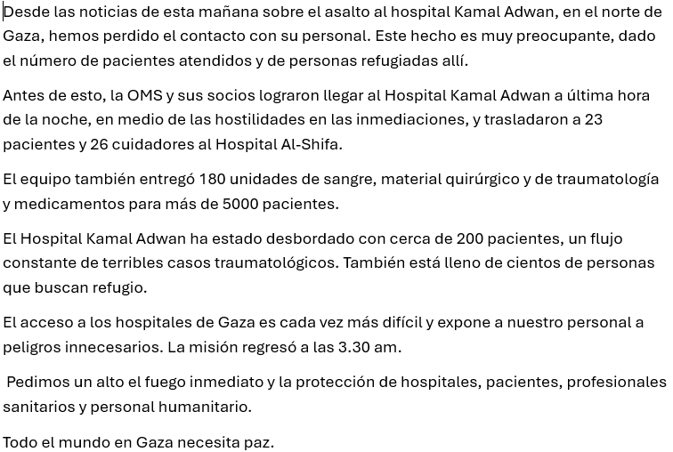 El Kamal Adwan es uno de los pocos hospitales que aún funcionan en la región, que ha sufrido tres semanas de intensas ofensivas israelíes, resultando en más de 700 muertes y miles de desplazados, según las autoridades gazatíes. La cadena Al Jazeera, informa que más de 150 personas están atrapadas en el hospital.