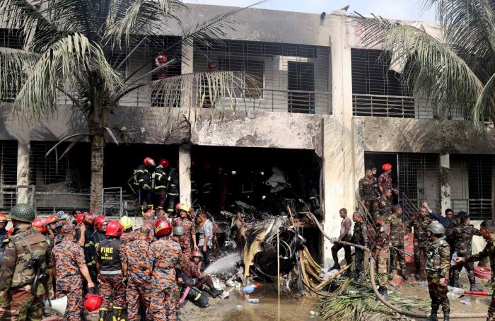 Un avión de entrenamiento de la Fuerza Aérea de Bangladesh se estrelló este lunes en el campus del Milestone School and College, en la zona norte de Uttara, en Daca, provocando la muerte de al menos 19 personas, entre ellas un estudiante. El incidente ocurrió minutos después de que la aeronave F-7 BGI despegara a las 13:06, hora local, generando un incendio de gran magnitud en las instalaciones escolares.