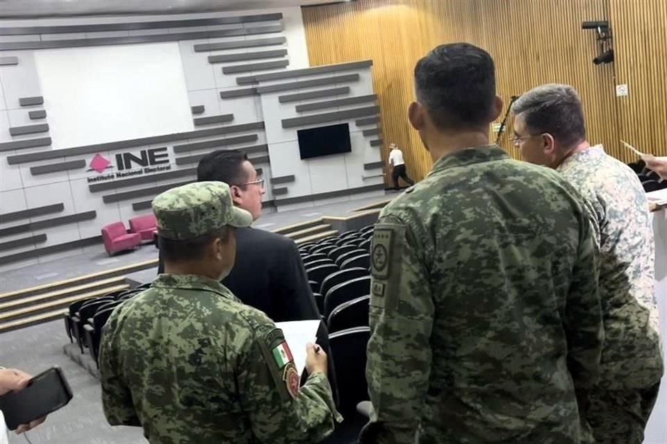 Binomios caninos, elementos de la Guardia Nacional, del Ejército Mexicoano y unidades oficiales patrullan desde el jueves pasado las inmediaciones del INE en la Ciudad de México, al mismo tiempo los recorridos de vigilancia y supervisión también incluyen el interior del edificio, particularmente el set de televisión que el organismo estableció en el salón del Consejo General.