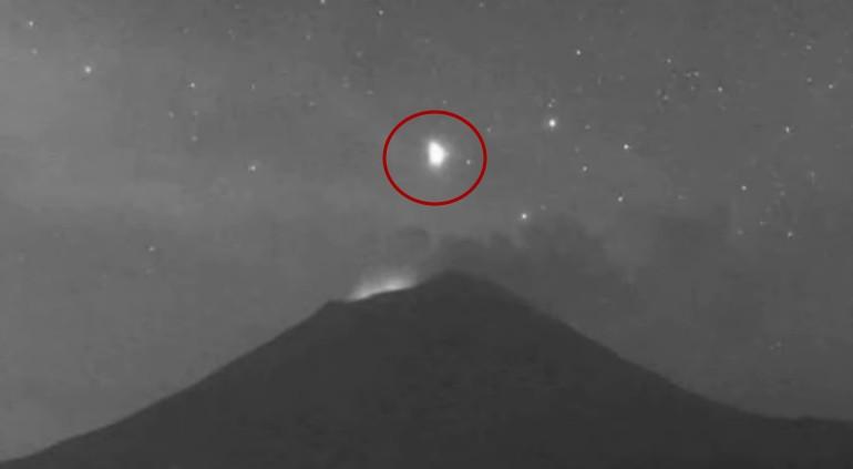 Un destello luminoso “sobrevolando” el volcán Popocatépetl fue captado por las cámaras de seguimiento de actividad en el coloso, los internautas ya teorizan su origen al momento que el video de vigilancia se viraliza a escala internacional.