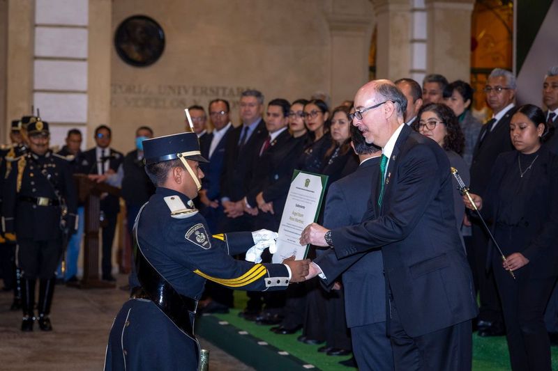 “Los exhortó a respetar y enaltecer con honor los símbolos patrios y universitarios de esta institución verde y oro, representarlos dignamente será su tarea como integrantes de la comunidad universitaria, contamos con ustedes para continuar haciendo historia y seguir forjando la grandeza de México”, puntualizó Barrera Díaz.