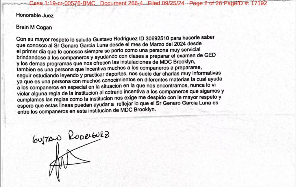 La Fiscalía de Estados Unidos ha solicitado la cadena perpetua para García Luna, así como una multa de 5 millones de dólares. El juez Cogan, quien ha estado en su cargo desde junio de 2006 durante el gobierno de George W. Bush, será el responsable de decidir su destino. Cogan es graduado de la Universidad de Illinois y obtuvo su título de abogado en la Facultad de Derecho de Cornell.