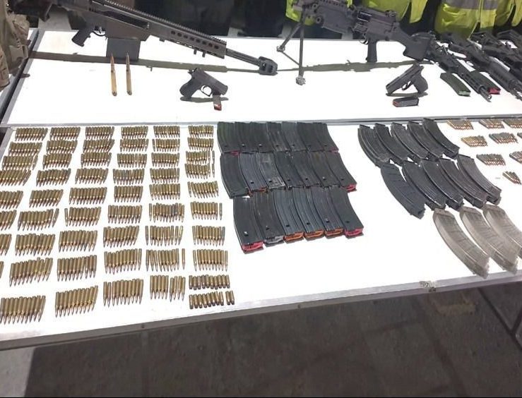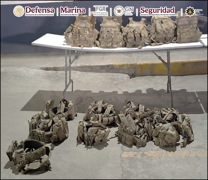 Las autoridades reportaron que entre el material asegurado se hallaron 14 rifles de asalto, un fusil Barrett, una ametralladora, dos pistolas, 49 cargadores y 778 cartuchos de munición de alto poder. Además, se incautaron 10 chalecos tácticos, nueve fornituras y un vehículo utilizado por los detenidos.