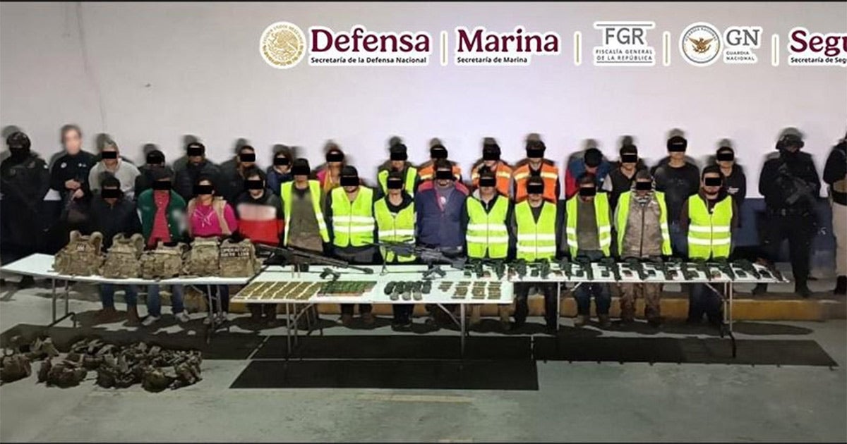 En un operativo conjunto realizado en Nuevo León, 27 individuos fueron detenidos, incluidos siete menores de edad y tres mujeres, quienes se encontraban en posesión de un arsenal compuesto por armas de fuego de alto calibre, así como equipo táctico especializado.