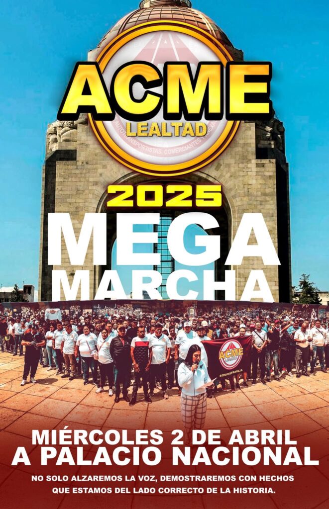 La Agrupación de Transportistas, Comerciantes y Anexas (ACME) ha anunciado una nueva movilización en la Ciudad de México y el Estado de México para el próximo miércoles 2 de abril. La protesta tiene como objetivo exigir respuestas ante denuncias de extorsión y fabricación de delitos que, según los manifestantes, han sido promovidas por autoridades locales.