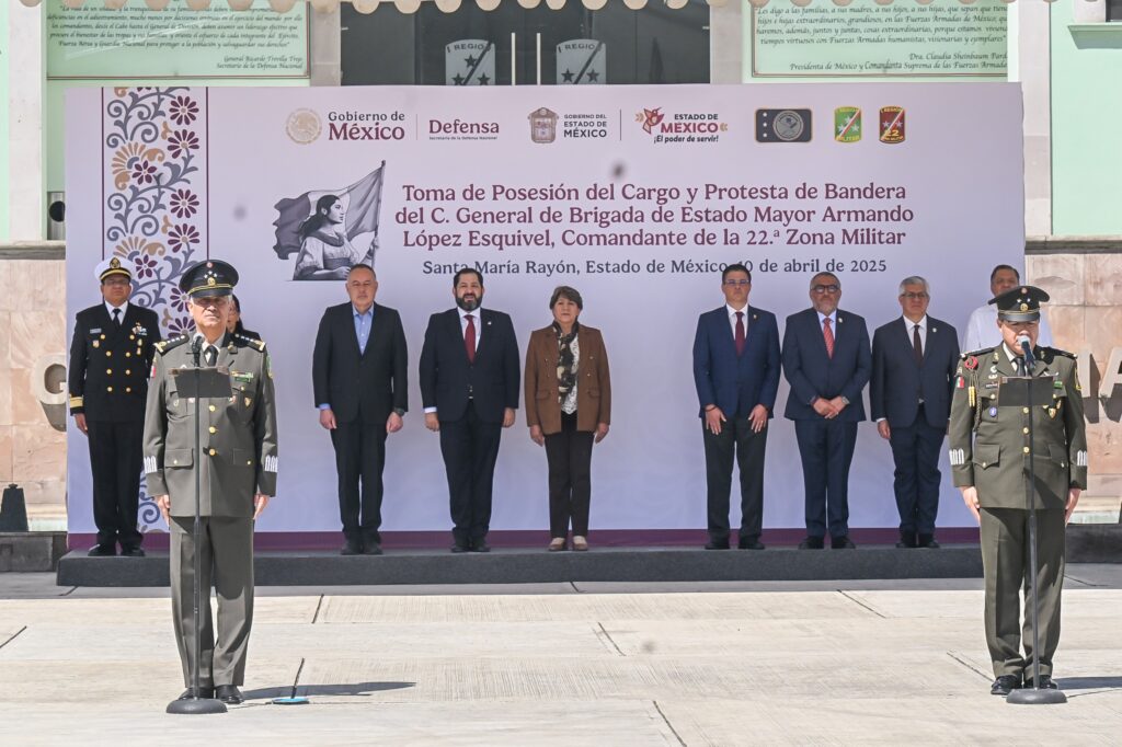 La Gobernadora del Estado de México, Delfina Gómez Álvarez, presidió la ceremonia de toma de protesta del General Armando López Esquivel como nuevo Comandante de la 22/a Zona Militar, con sede en Santa María Rayón. El acto, que tuvo lugar en las instalaciones de este cuartel, también fue un espacio para que la mandataria estatal liderara la sesión de la Mesa de Coordinación para la Construcción de la Paz, un organismo clave para la estrategia de seguridad en la región.