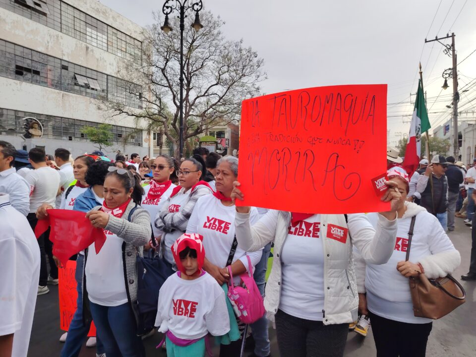 Miles de personas se congregaron este martes en Aguascalientes para manifestarse a favor de la permanencia de expresiones culturales como las corridas de toros, las peleas de gallos y la charrería. La movilización, denominada “Vive Libre”, comenzó a las 10:00 horas en la Avenida Francisco I. Madero y avanzó hacia la Plaza de la Patria, concluyendo frente al Congreso del Estado cerca de las 11:10 horas.