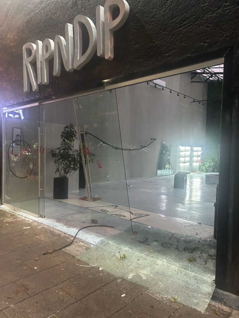 Uno de los grafitis pintados sobre vidrios rotos contenía la frase “Fuera de México”, mientras varias personas arrojaban piedras a fachadas de establecimientos de lujo. Algunos comerciantes denunciaron saqueos y daños materiales considerables, mientras que otros expresaron temor por la escalada de tensión entre locales y extranjeros.