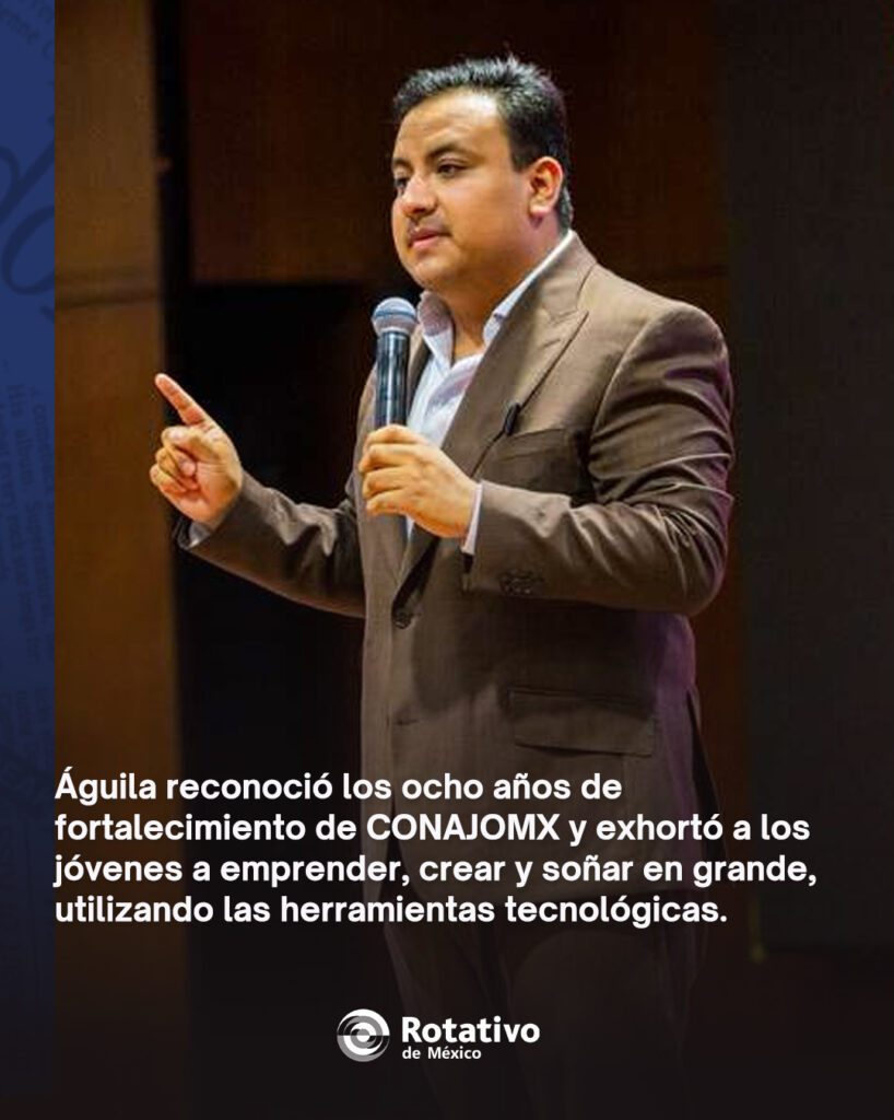 Durante su intervención, Águila reconoció los ocho años de fortalecimiento de CONAJOMX y exhortó a los jóvenes a emprender, crear y soñar en grande, utilizando las herramientas tecnológicas disponibles.