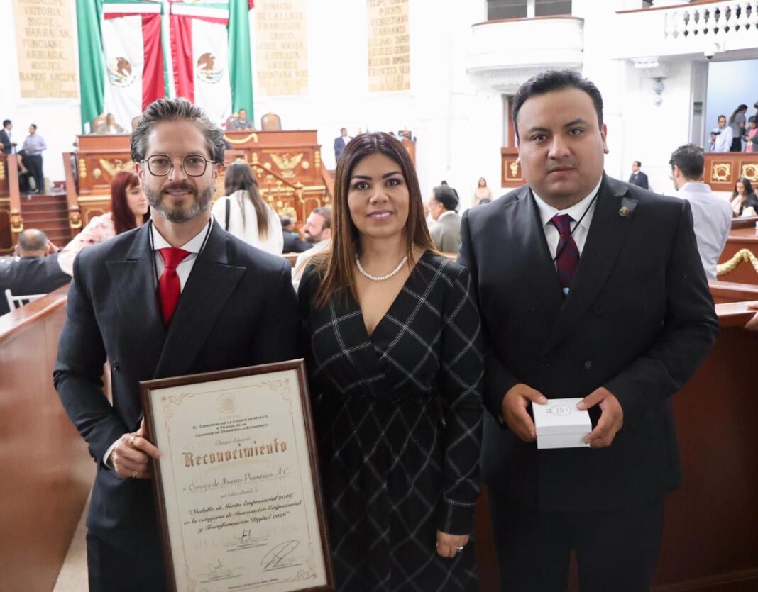 El Congreso de la Ciudad de México, en el marco de la III Legislatura, otorgó este martes la Medalla al Mérito Empresarial a la Confederación Nacional de Jóvenes Empresarios (CONAJO MX), en reconocimiento a su impacto en el desarrollo económico y el fortalecimiento del emprendimiento juvenil en el país.